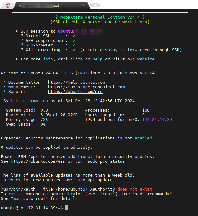 有了IP地址,我们就可以通过SSH连接该云服务器进行管理,这里以Mobaxterm为例: